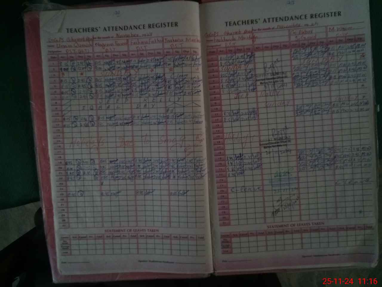 | Leave | Duty | Absent | Maternity | Medical | Ex- Pak |