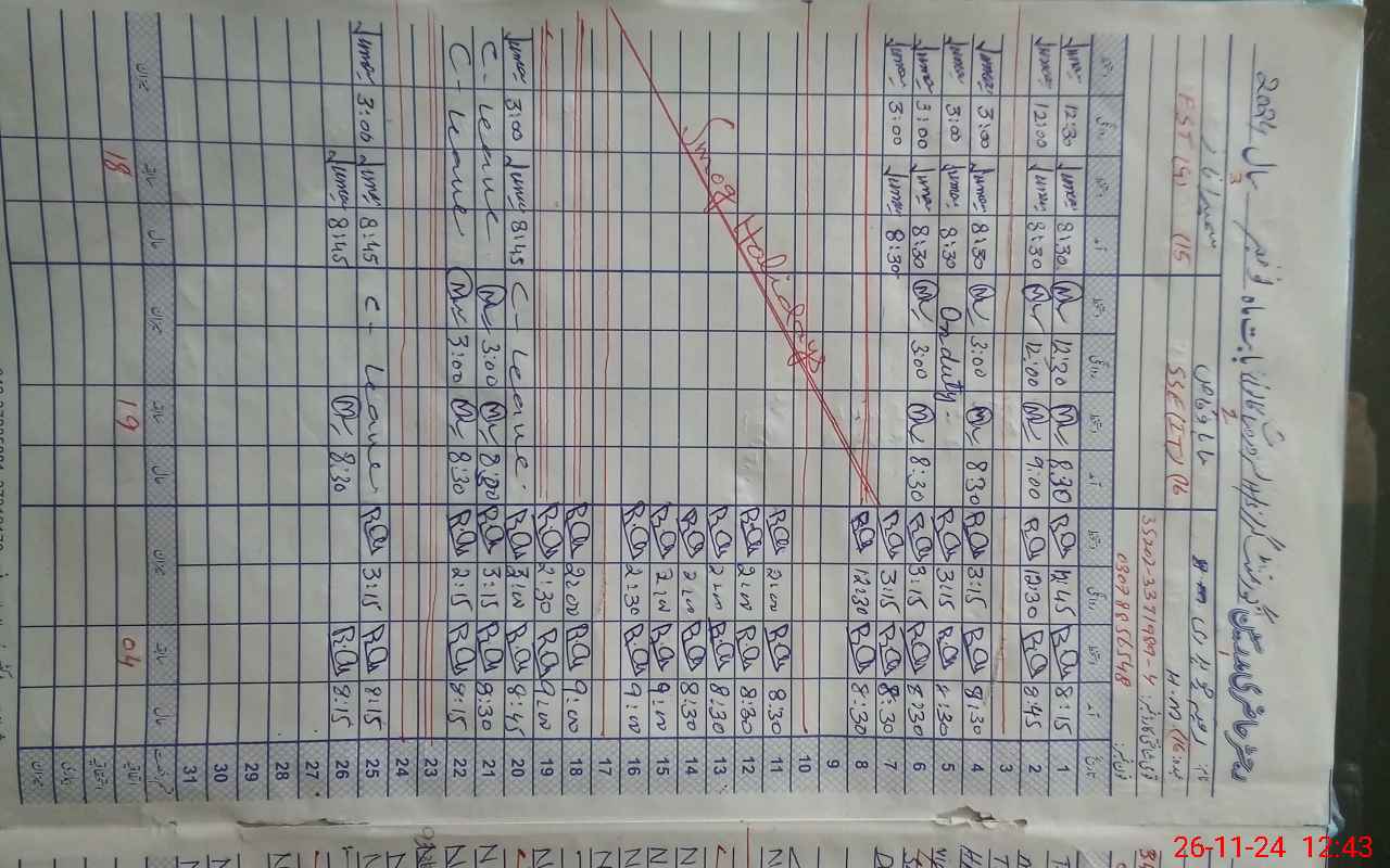 | CNIC | Full Name | Designation | R/C | Absence During Last Calender Month |