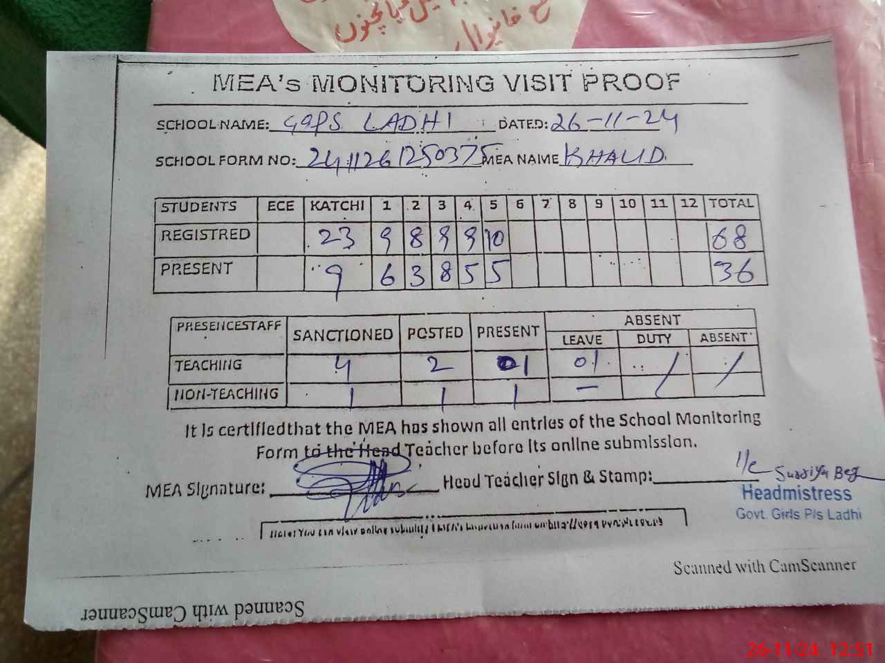 | EMIS Code: 36430370 | Name of School: GGPS LADHI, TULAMBA | |||