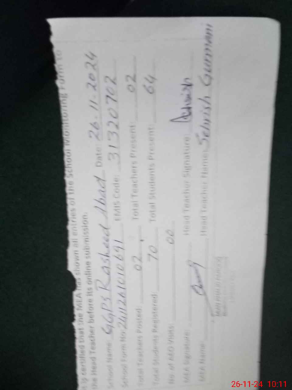 | EMIS Code: 31320702 | Name of School: GGPS RASHID ABAD | |||