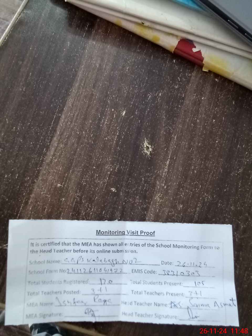 | EMIS Code: 38310303 | Name of School: GGPS NO. 2 KALA BAGH | |||