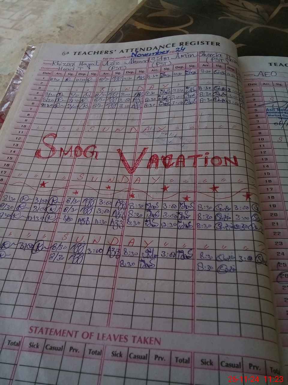 | Leave | Duty | Absent | Maternity | Medical | Ex- Pak |