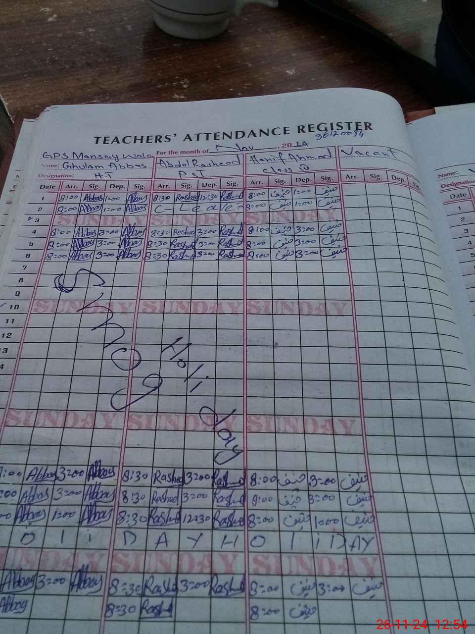 | CNIC | Full Name | Designation | R/C | Absence During Last Calender Month |