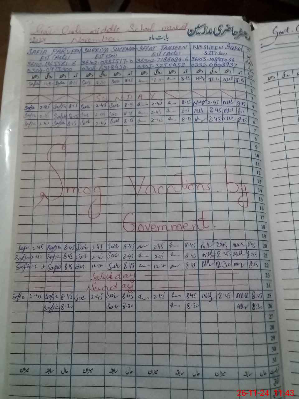 | Name: NO**** IQ**** Designation: (School Headmaster's/Headmistress's) SST Phone/Cell Number: 03**** |