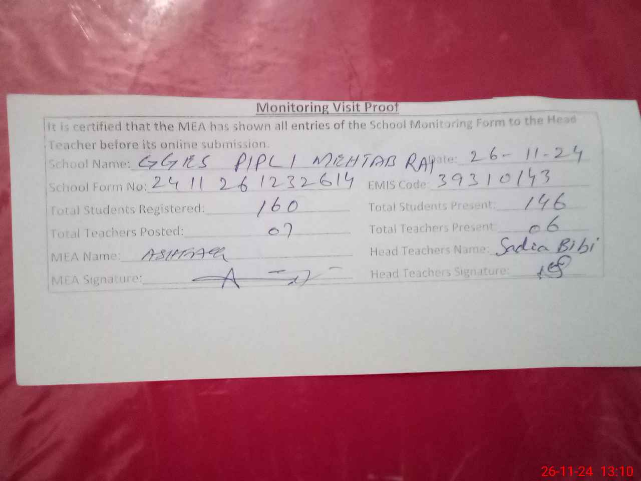 | EMIS Code: 39310143 | Name of School: GGES PIPLI MEHTAB RAI | |||