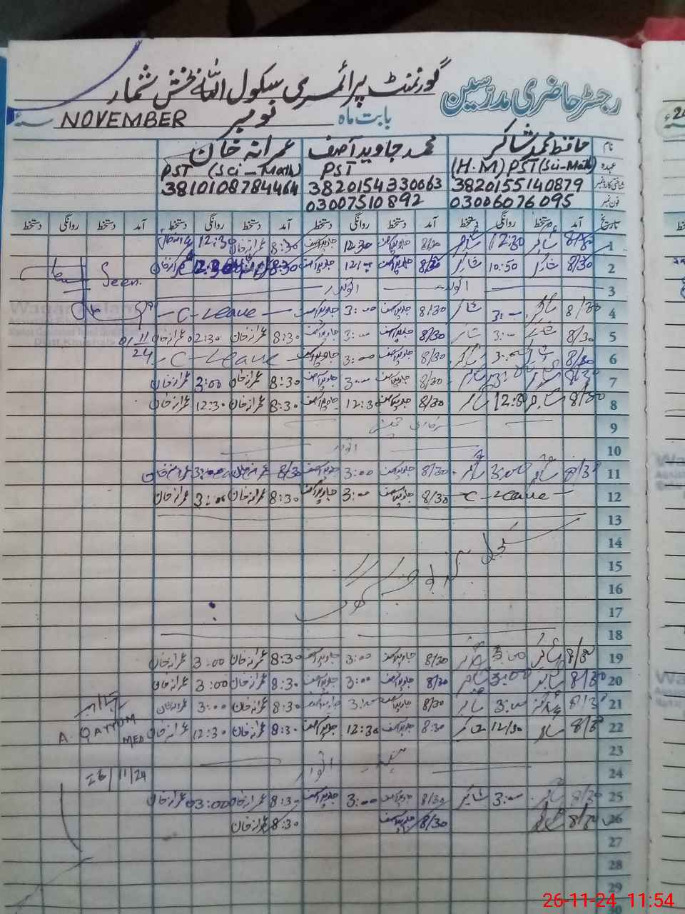 | Name: Mu**** Ja**** As**** Designation: (School Headmaster's/Headmistress's) PST Phone/Cell Number: 03**** |