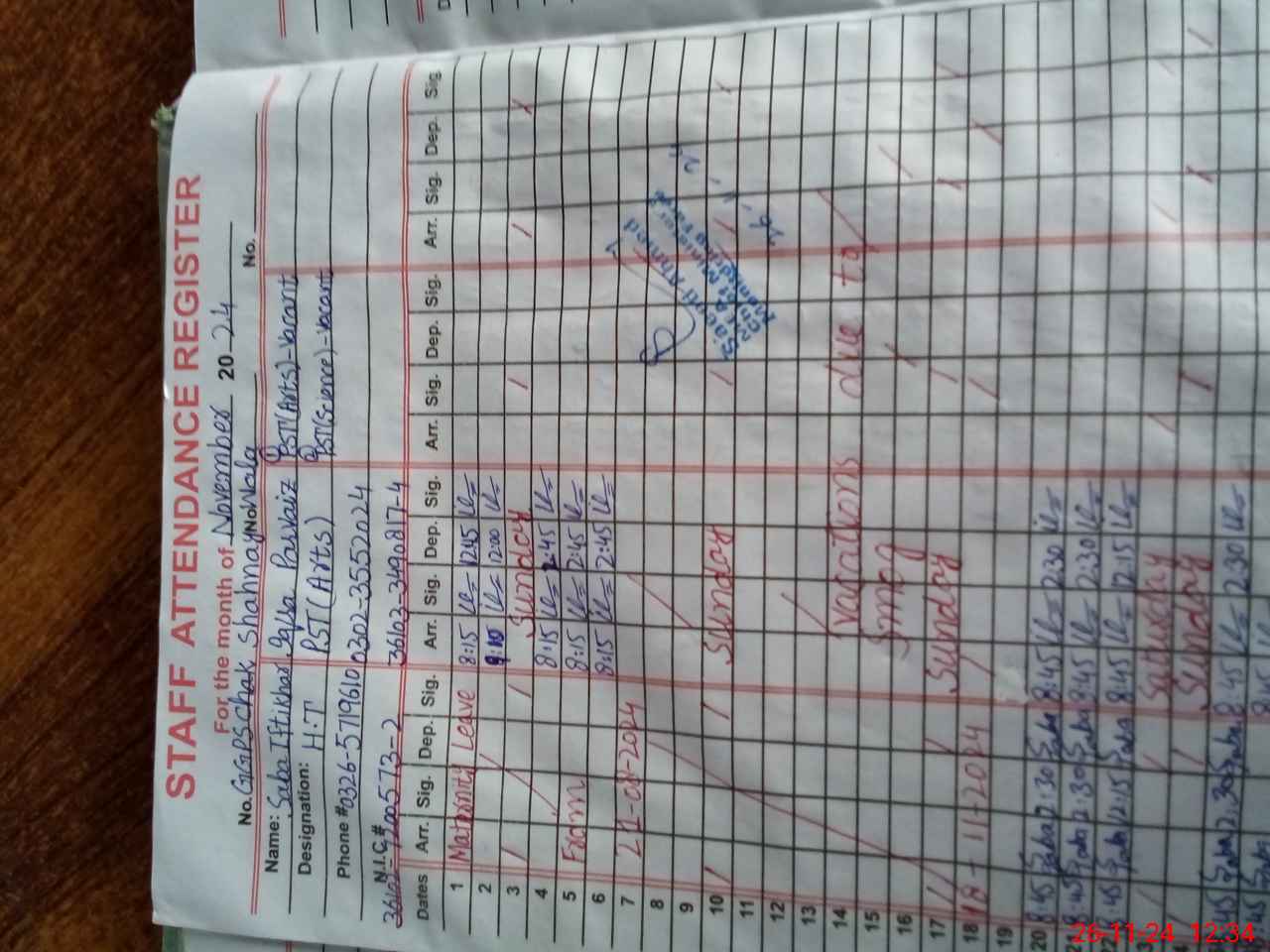 | Name: SA**** IF**** Designation: (School Headmaster's/Headmistress's) ESE (SCI-MATH) Phone/Cell Number: 03**** |