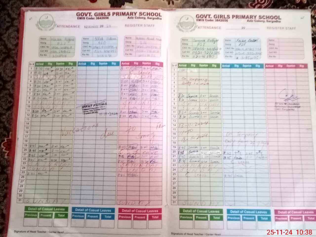 | CNIC | Full Name | Designation | R/C | Absence During Last Calender Month |