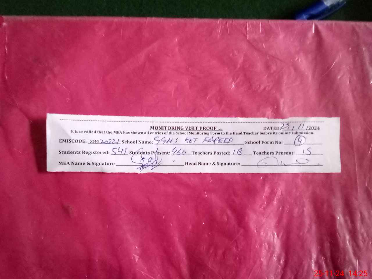 | EMIS Code: 38420221 | Name of School: GGHS MC KOT FAREED | |||