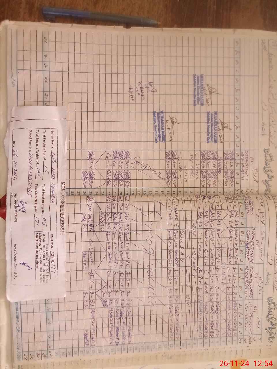 | Name: MU**** SA**** Designation: (School Headmaster's/Headmistress's) PST Phone/Cell Number: 03**** |