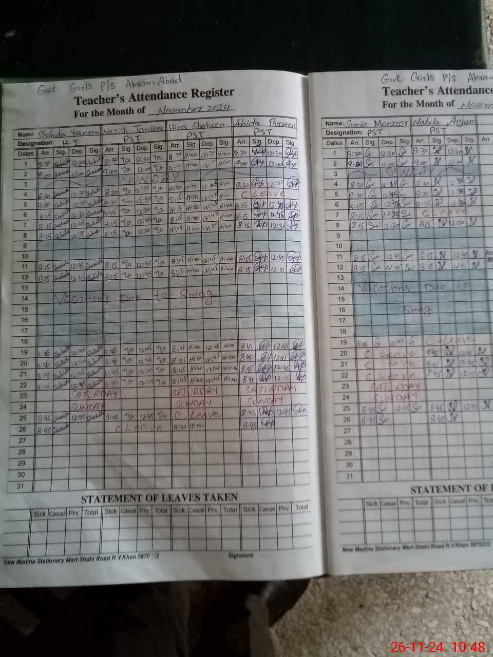 | Monitoring Date: 26-11-2024 | Start Time: 26-11-2024 10:19 AM | End Time: 26-11-2024 11:17 AM | Name of MEA: Ab**** Gh**** | |