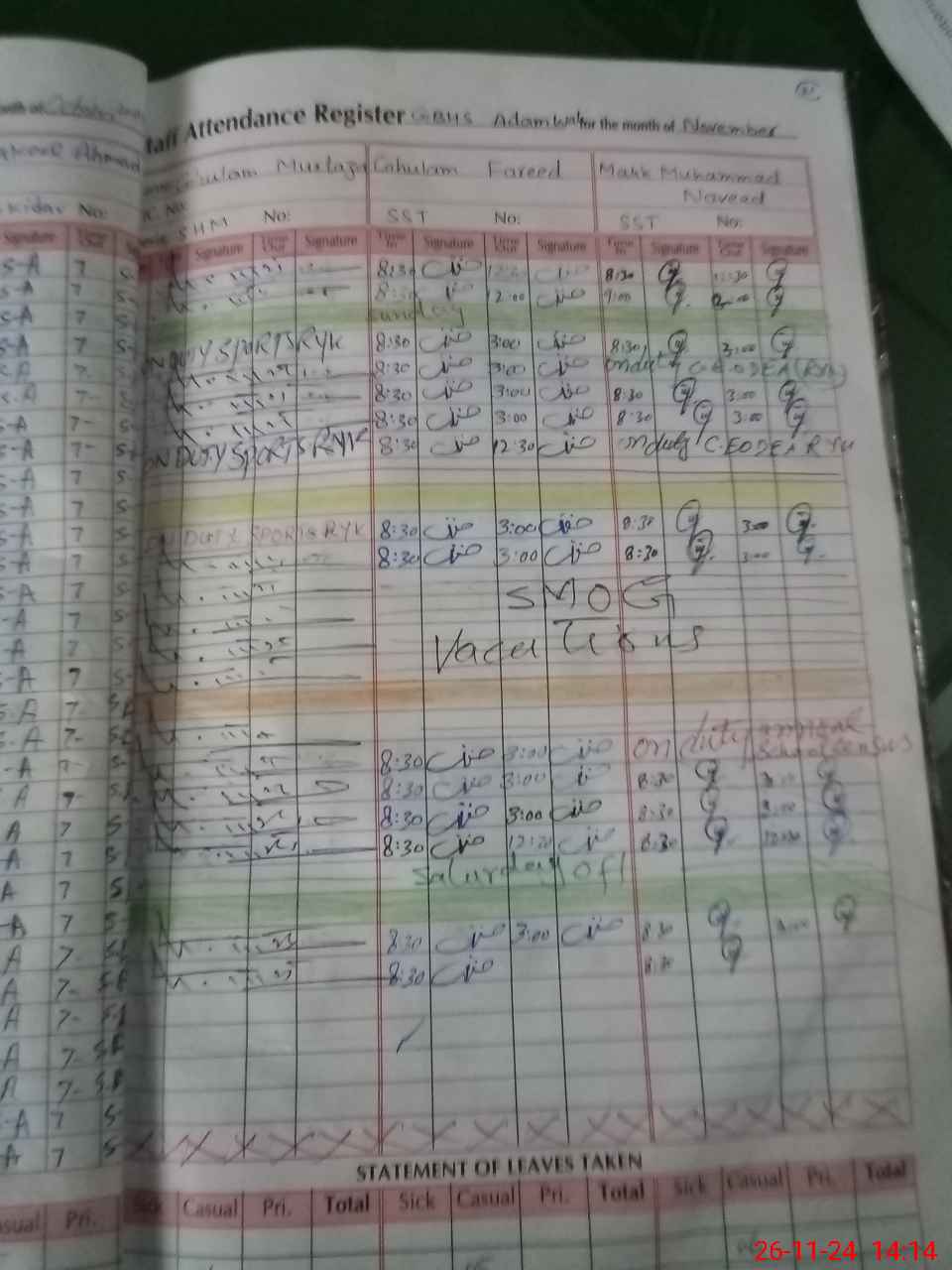 | 31**** | Af**** Ah**** Za**** | EST | Regular | 0 | 0 | 0 | 0 | 0 | 0 | 0 | 0 | 0 | Absent (Un-Authorized) |