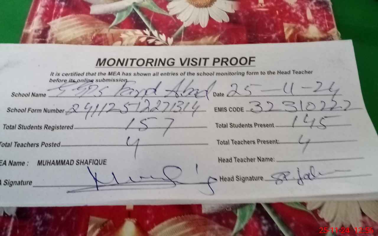 | EMIS Code: 32310222 | Name of School: GGPS FARID ABAD | |||