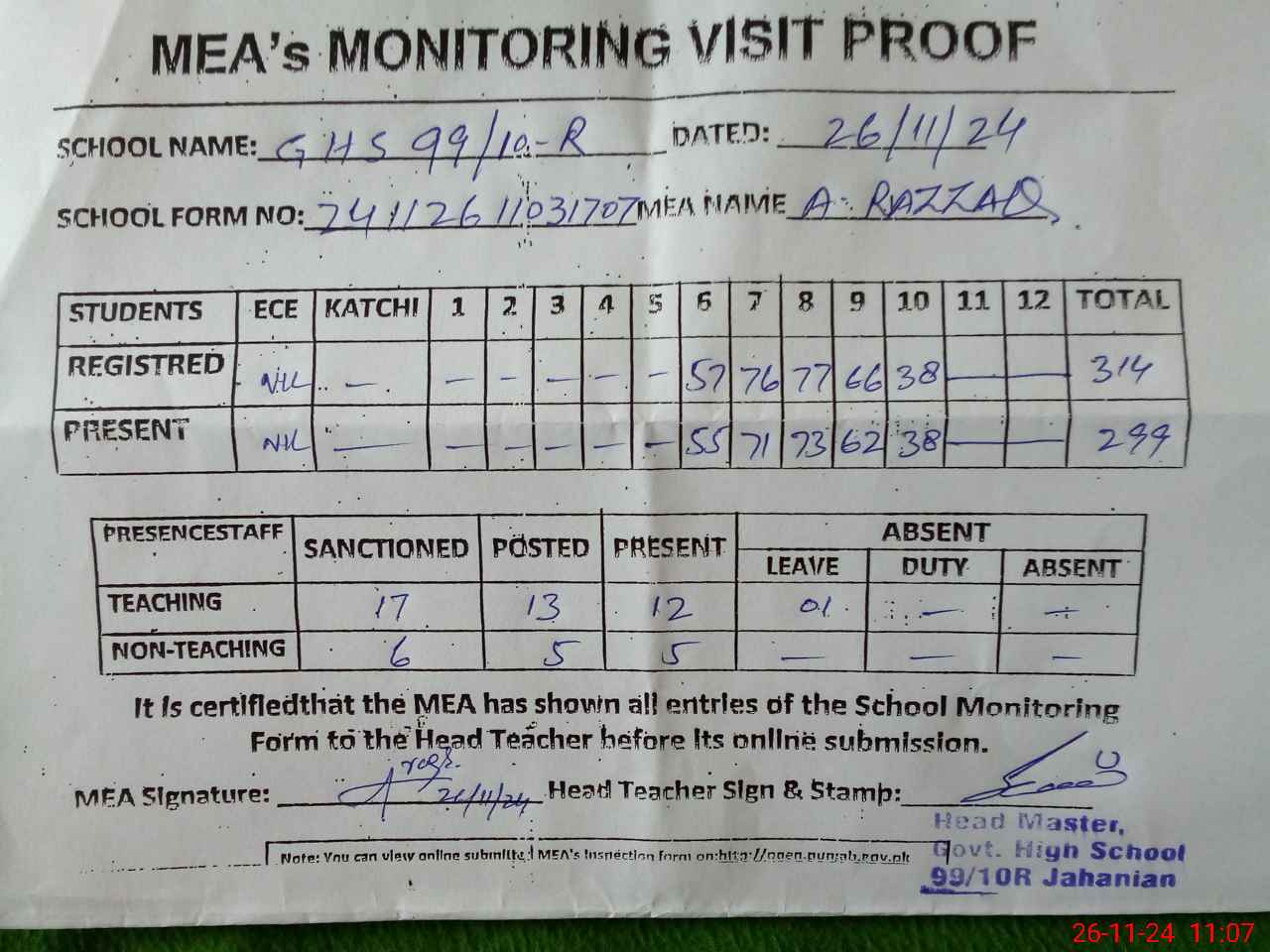 | EMIS Code: 36440031 | Name of School: GHS 99/10-R, JAHANIAN | |||