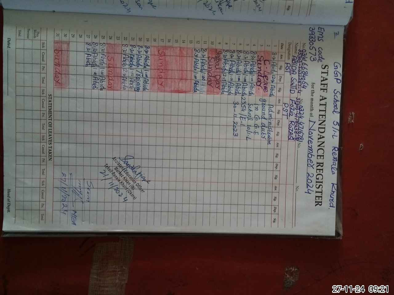 | Name: Ab**** Sa**** Designation: (School Headmaster's/Headmistress's) PST Phone/Cell Number: 03**** |
