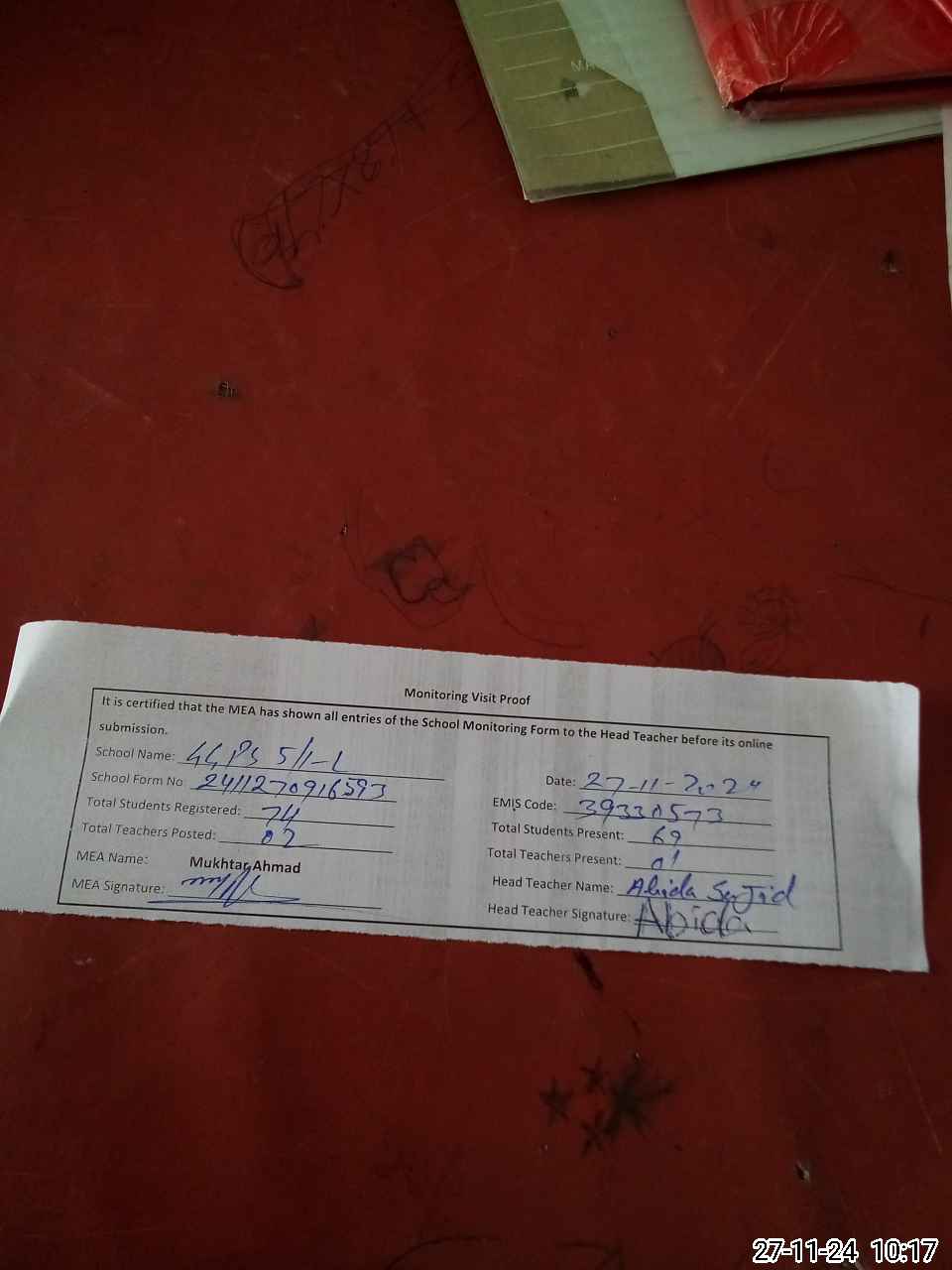 | Certified that this School was Inspected by the Undersigned MEA/DMO Today and the Information Stated Above is as Per Record. | |||||