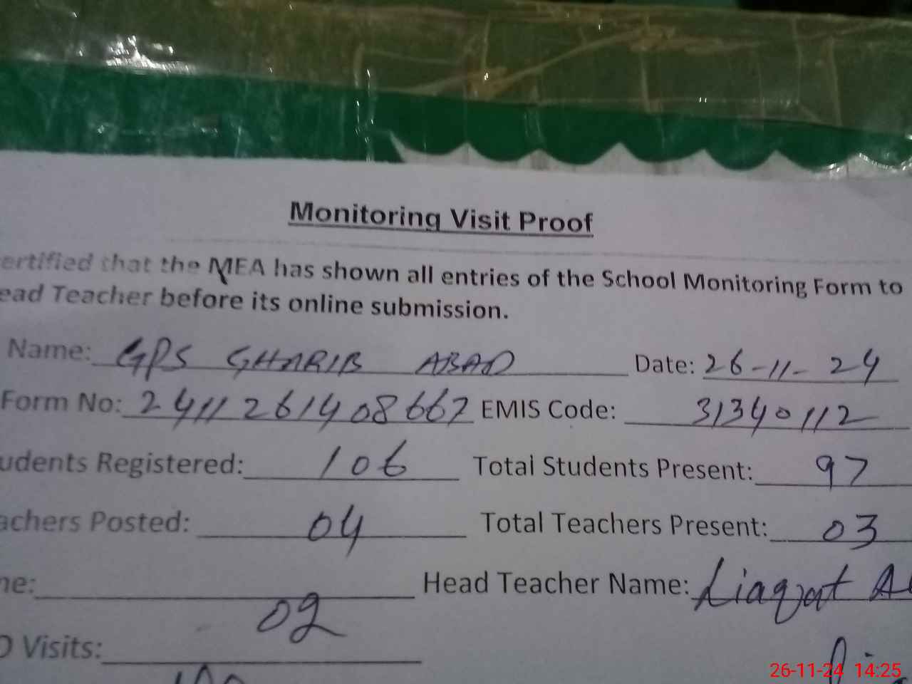 | EMIS Code: 31340112 | Name of School: GPS GHARIB ABAD | |||