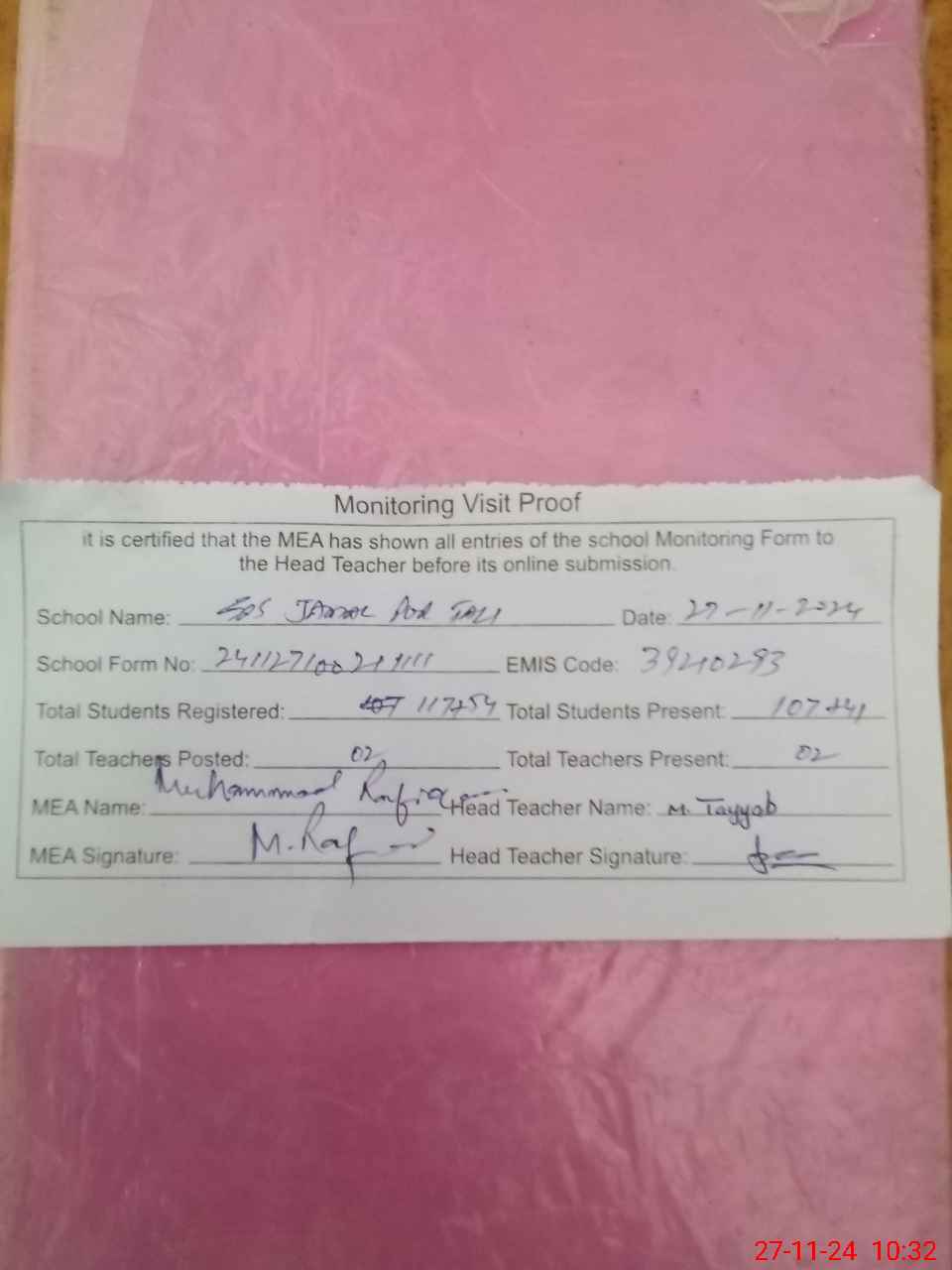 | EMIS Code: 39210293 | Name of School: GPS JAMAL PUR TALI | |||