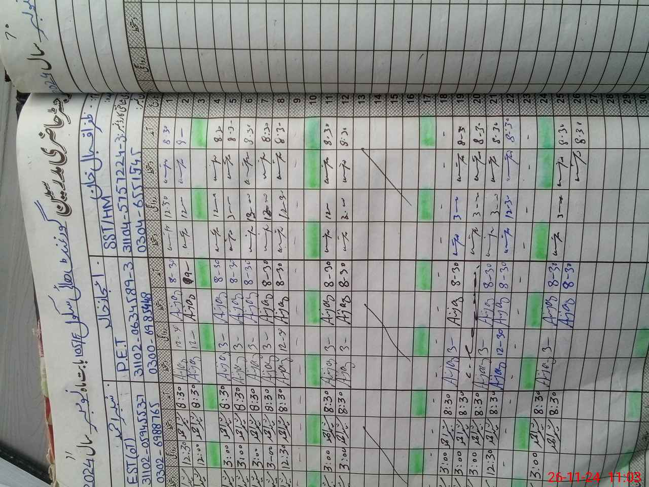 | 31**** | Za**** Iq**** Kh**** | Regular | 0 | 0 | 0 | 0 | 0 | 0 | 0 | 0 | 0 | Absent (Un-Authorized) | |