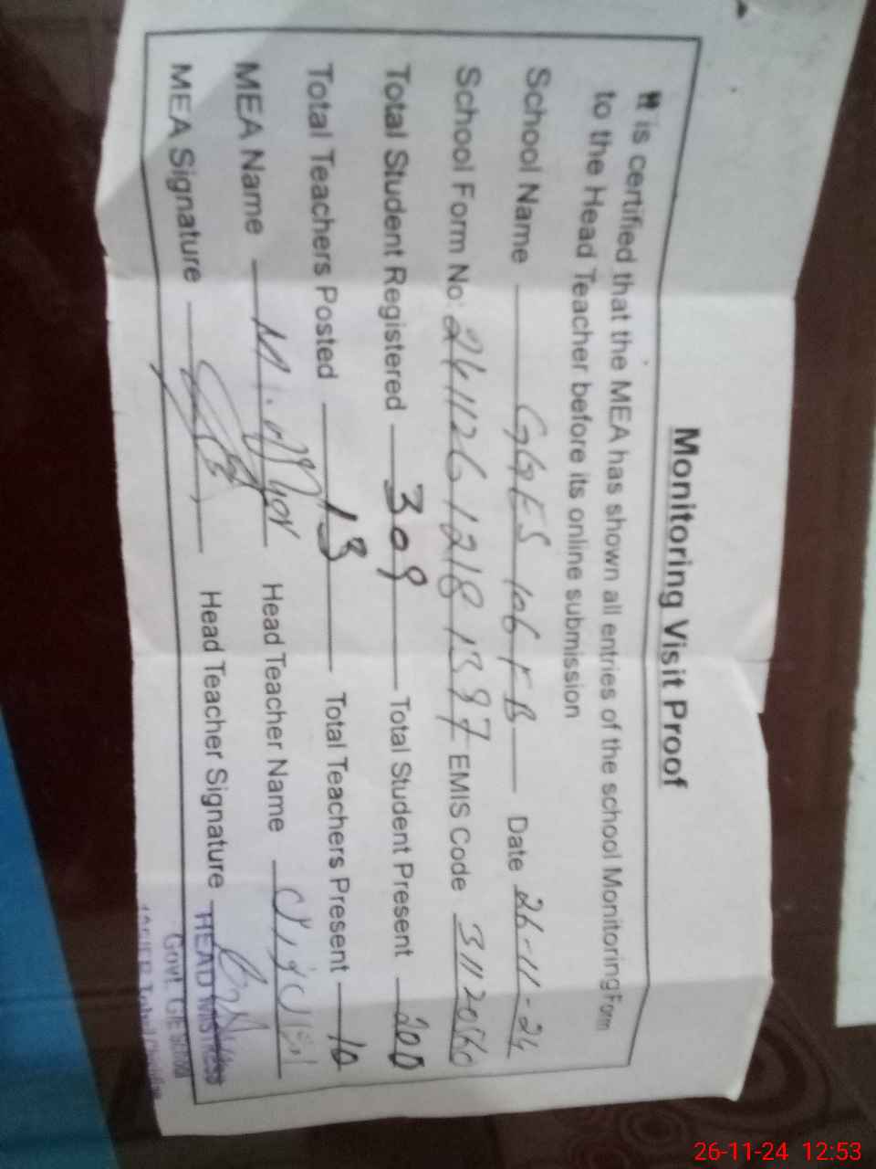 | Certified that this School was Inspected by the Undersigned MEA/DMO Today and the Information Stated Above is as Per Record. | |||||