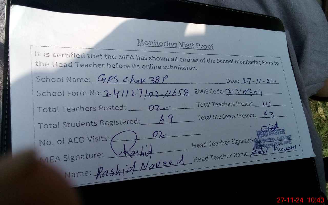 | EMIS Code: 31310304 | Name of School: GPS CHAK 38/P | |||