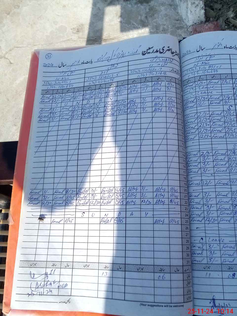 | CNIC | Full Name | Designation | R/C | Absence During Last Calender Month |