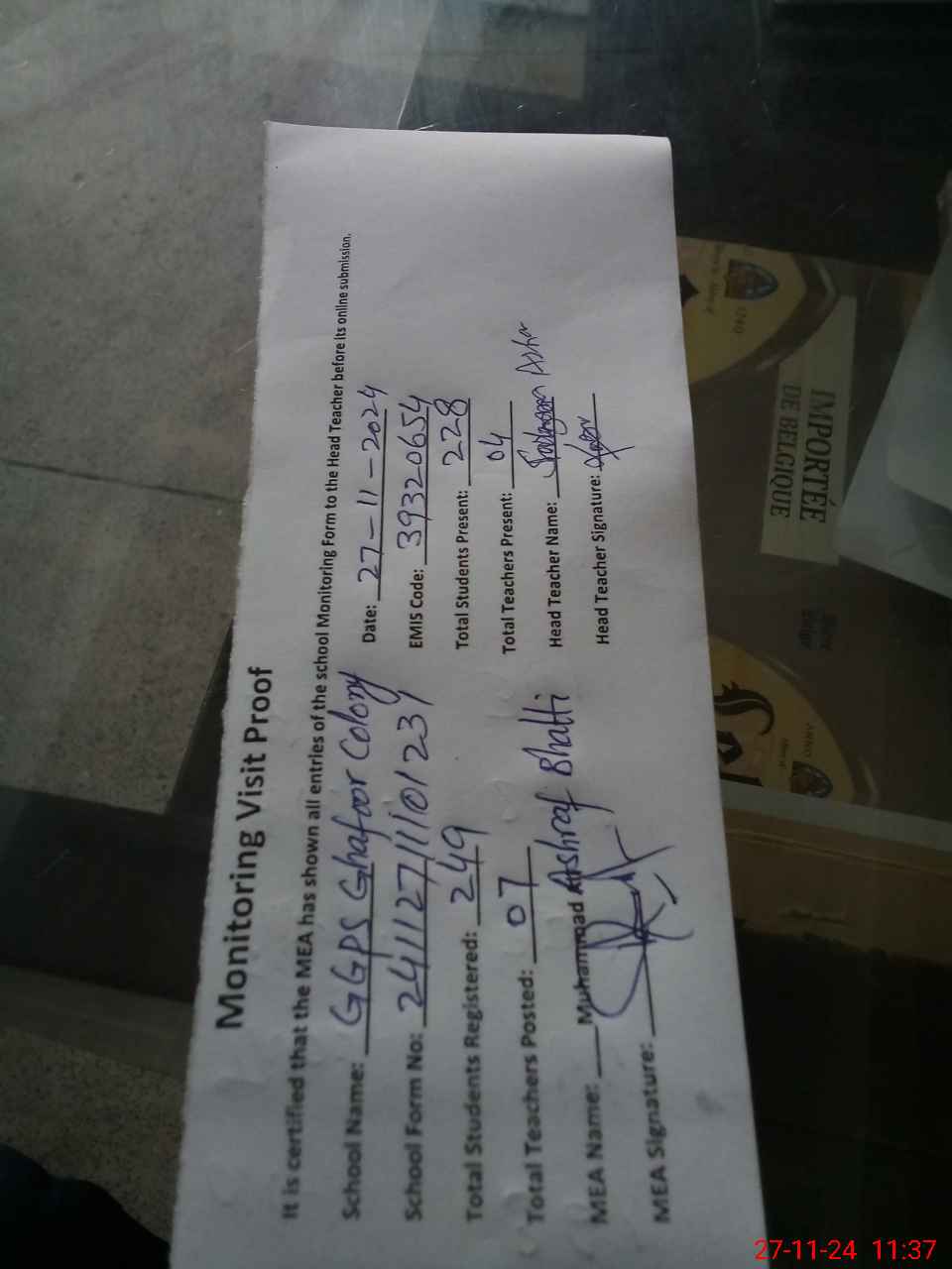 | EMIS Code: 39320654 | Name of School: GGPS GHAFOOR COLONY OKARA | |||
