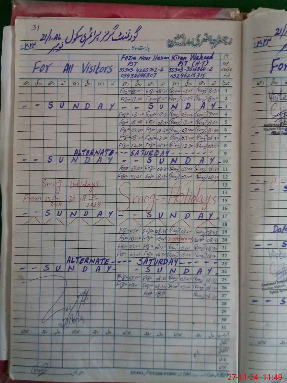 | Name: KI**** WA**** Designation: (School Headmaster's/Headmistress's) PST Phone/Cell Number: 03**** |