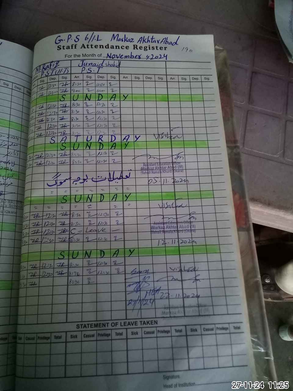 | Name: Mu**** Ra**** Designation: (School Headmaster's/Headmistress's) PST Phone/Cell Number: 03**** |