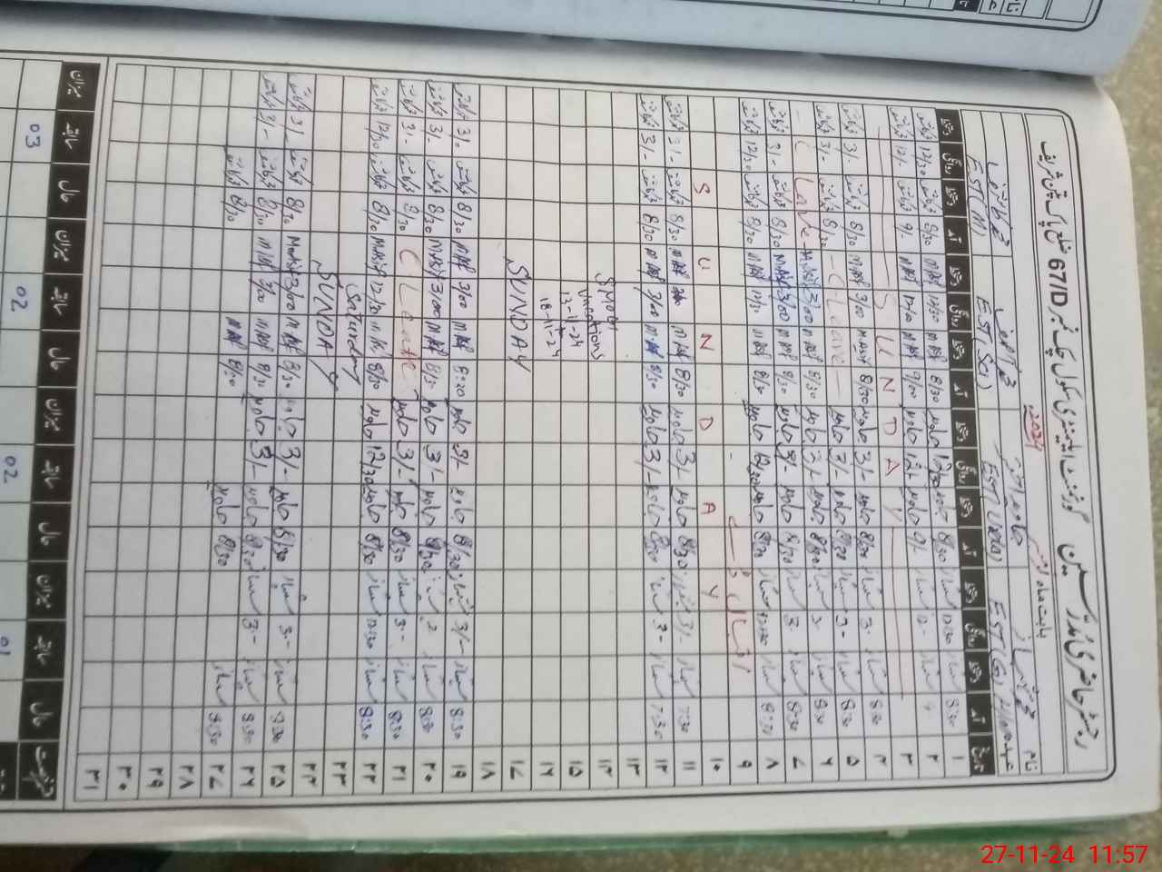 | CNIC | Full Name | Designation | R/C | Absence During Last Calender Month |