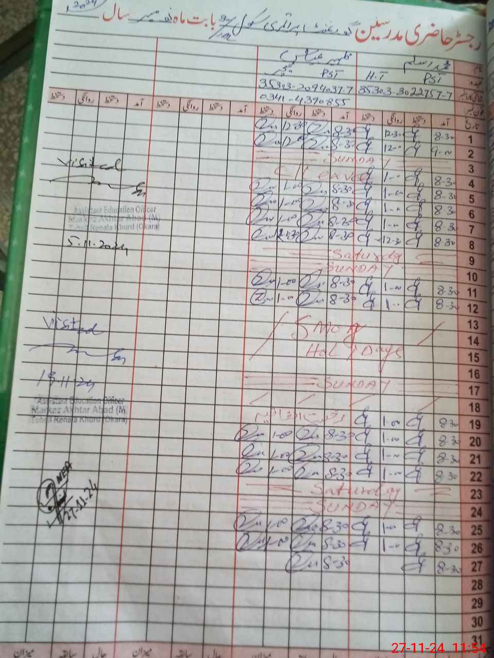 | Name: Za**** Ab**** Designation: (School Headmaster's/Headmistress's) PST Phone/Cell Number: 03**** |