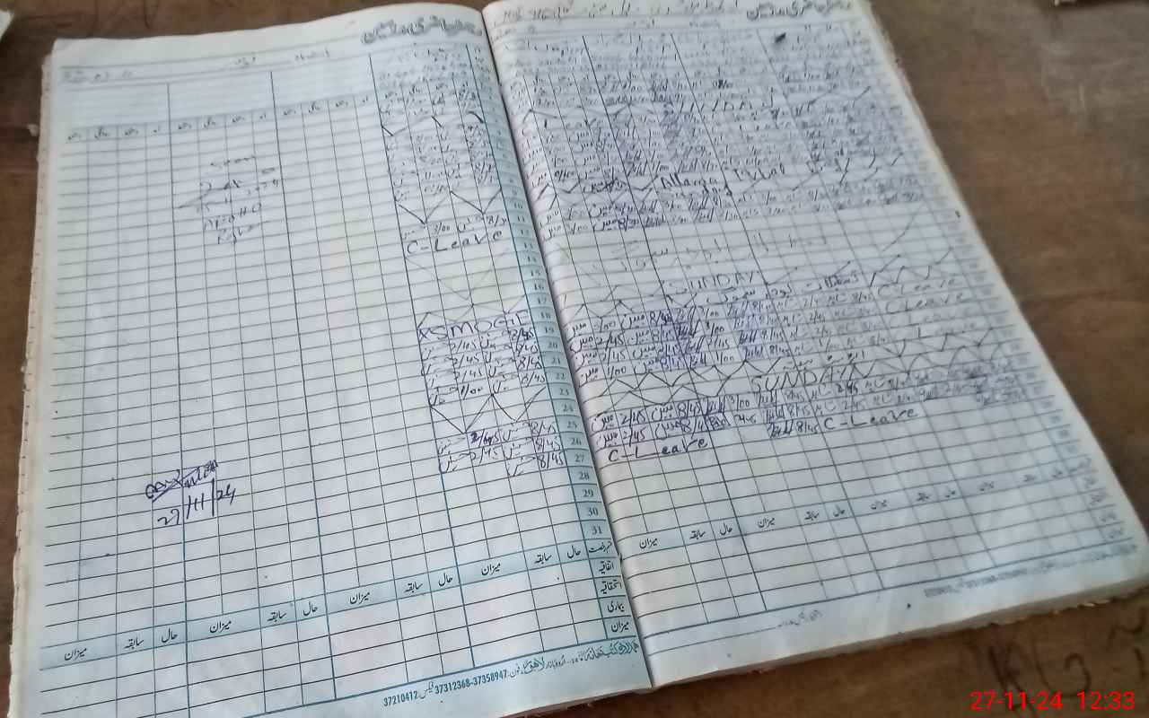 | CNIC | Full Name | Designation | R/C | Absence During Last Calender Month |