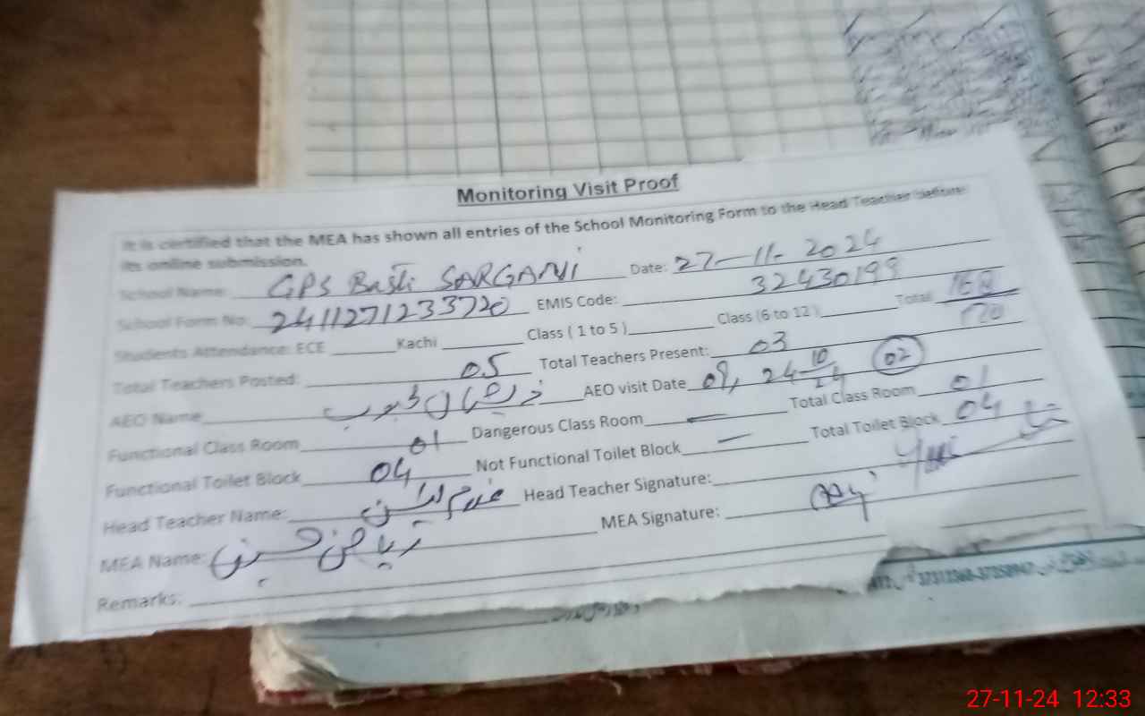 | EMIS Code: 32430199 | Name of School: GPS BASTI SARGANI | |||