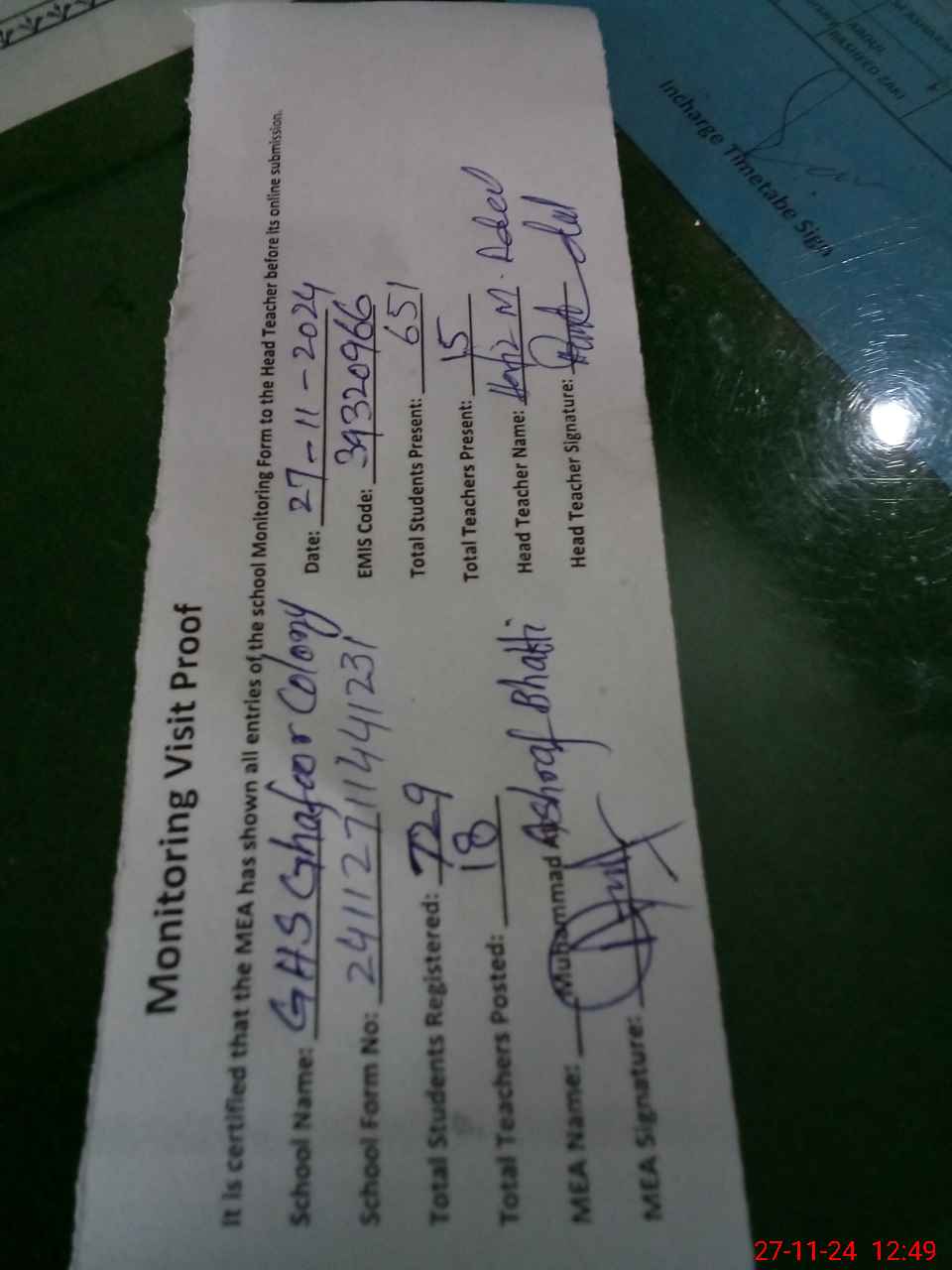 | EMIS Code: 39320966 | Name of School: GHS MC GHAFOOR COLONY OKARA | |||