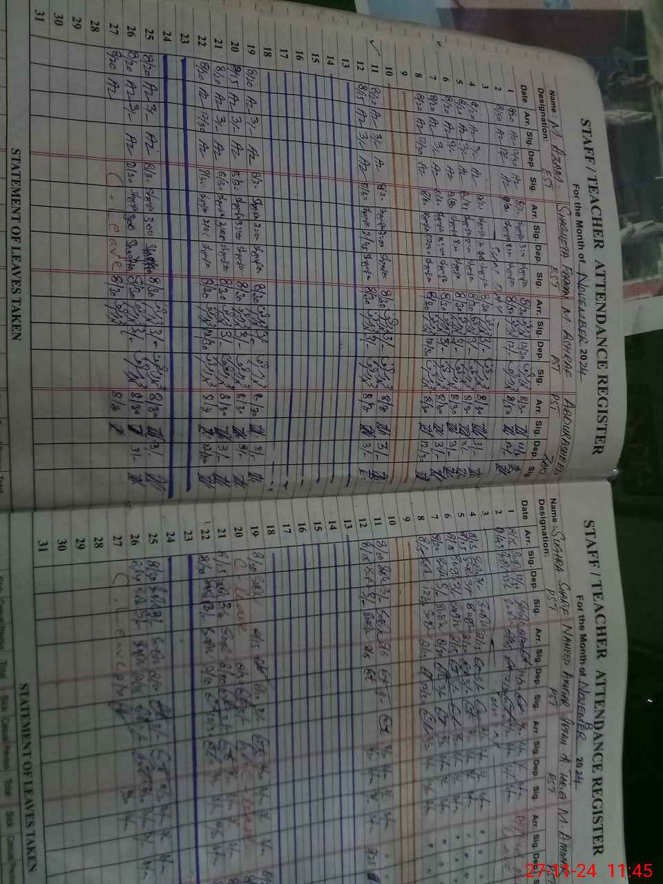 | Monitoring Date: 27-11-2024 | Start Time: 27-11-2024 11:40 AM | End Time: 27-11-2024 12:50 PM | Name of MEA: MU**** AS**** BH**** (R**** | |
