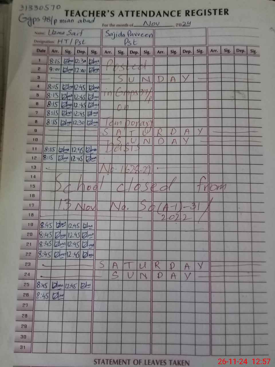 | Name: Uz**** Sa**** Designation: (School Headmaster's/Headmistress's) P S T Phone/Cell Number: 03**** |