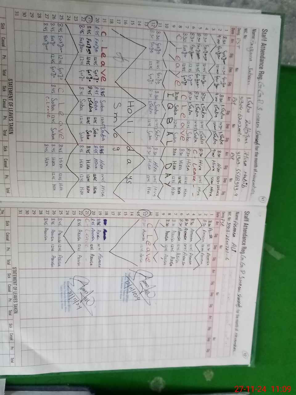 | CNIC | Full Name | Designation | R/C | Absence During Last Calender Month |