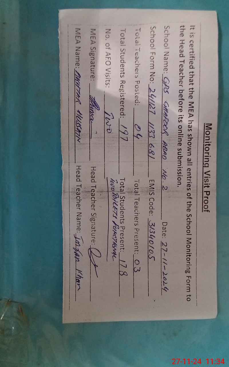 | EMIS Code: 31340105 | Name of School: GPS GHAFOOR A SADIQABAD NO.2 | |||