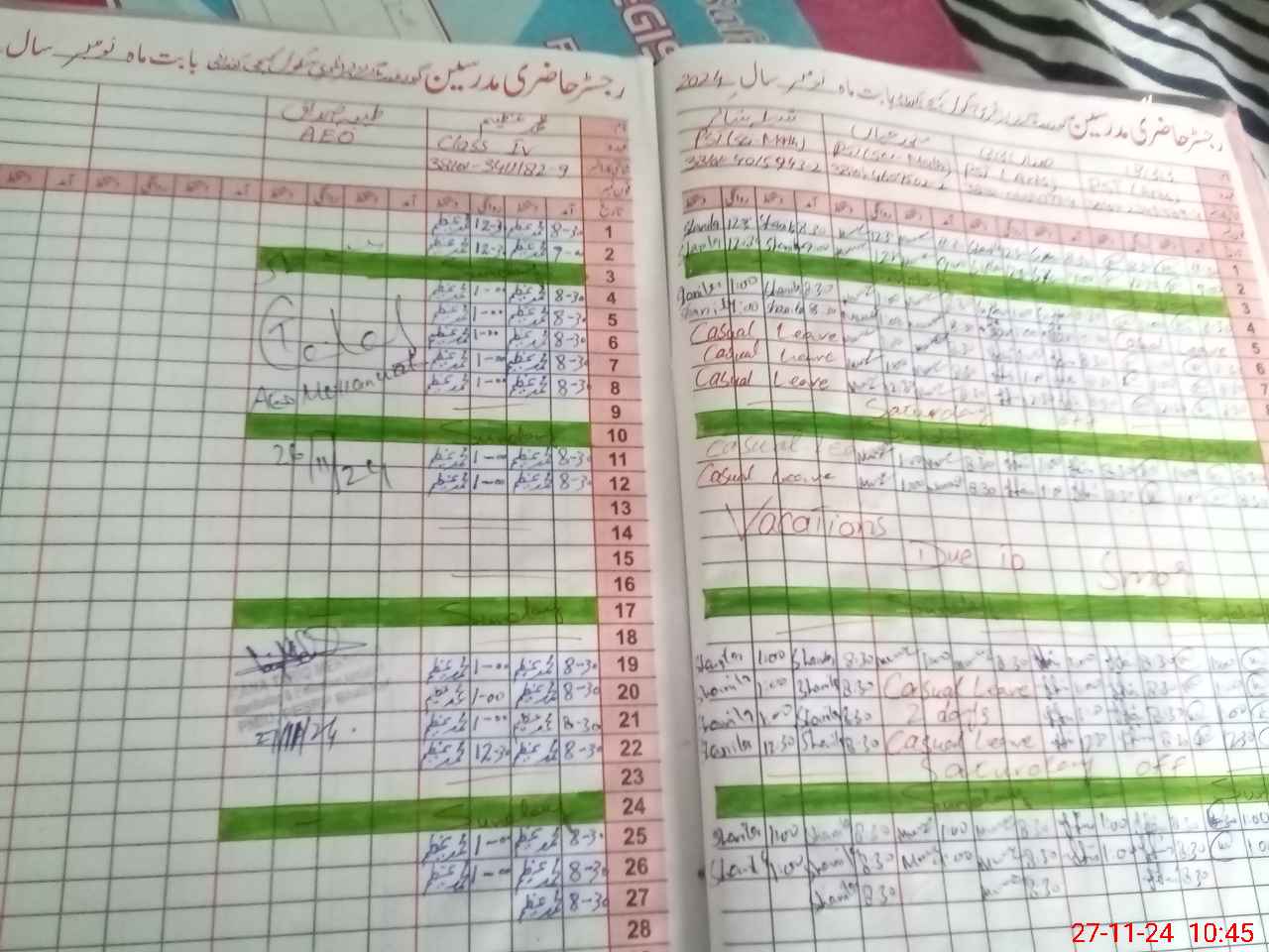 | Leave | Duty | Absent | Maternity | Medical | Ex- Pak |