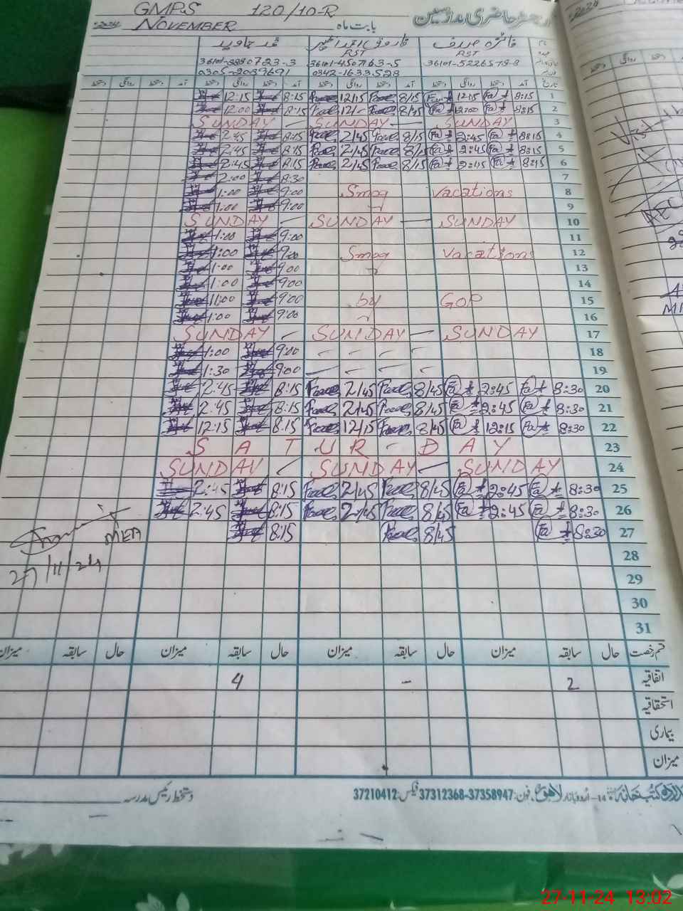 | CNIC | Full Name | Designation | R/C | Absence During Last Calender Month |