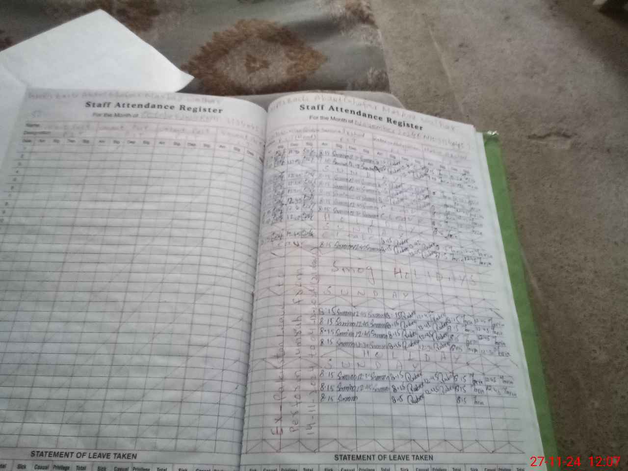 | Leave | Duty | Absent | Maternity | Medical | Ex- Pak |