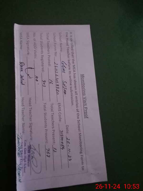 | Attendance Register | Head Teacher | MEA with School | Visit Proof |
