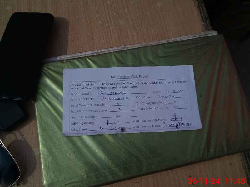 | Certified that this School was Inspected by the Undersigned MEA/DMO Today and the Information Stated Above is as Per Record. | |||||