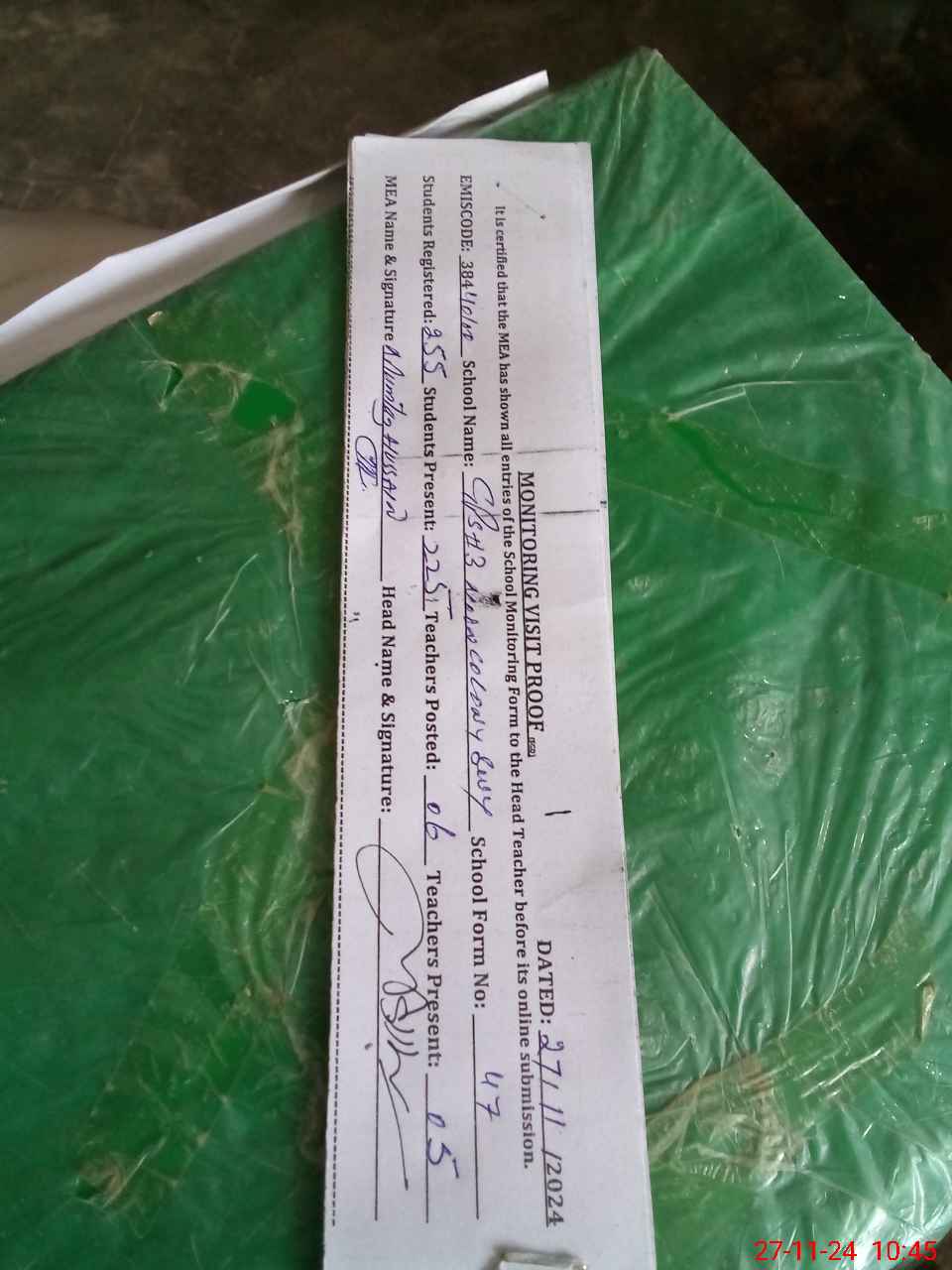 | EMIS Code: 38440100 | Name of School: GPS NO. 3 NOON COLONY SILLANWALI | |||