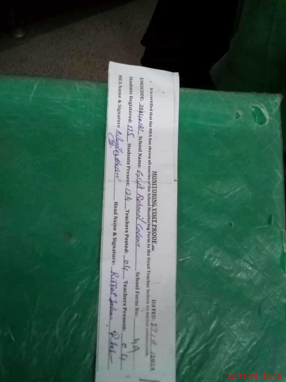 | Attendance Register | Head Teacher | MEA with School | Visit Proof |