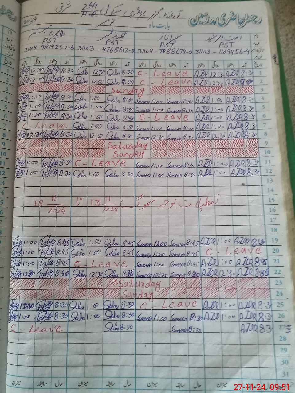 | 31**** | Ri**** Sh**** | PST | Regular | 0 | 0 | 0 | 0 | 0 | 0 | 0 | 0 | 0 | Absent (Un-Authorized) |