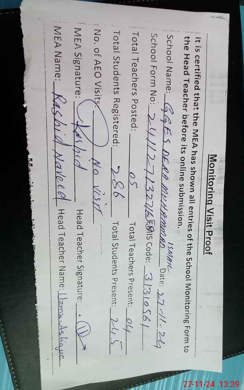 | EMIS Code: 31310561 | Name of School: GGES DERA MUHAMMAD ISMAIL | |||