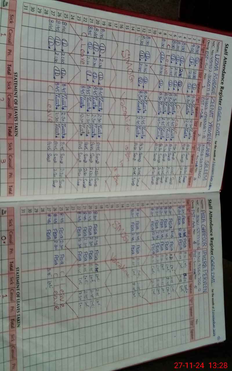 | CNIC | Full Name | Designation | R/C | Absence During Last Calender Month |