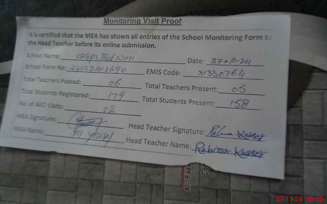 | EMIS Code: 31330764 | Name of School: GGPS THALWARI | |||