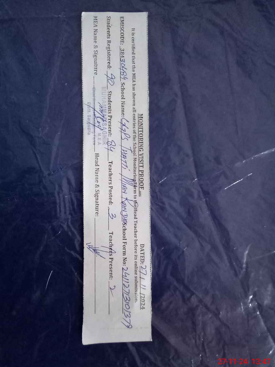 | EMIS Code: 38430484 | Name of School: GGPS THATHI MIAN RANJHA | |||
